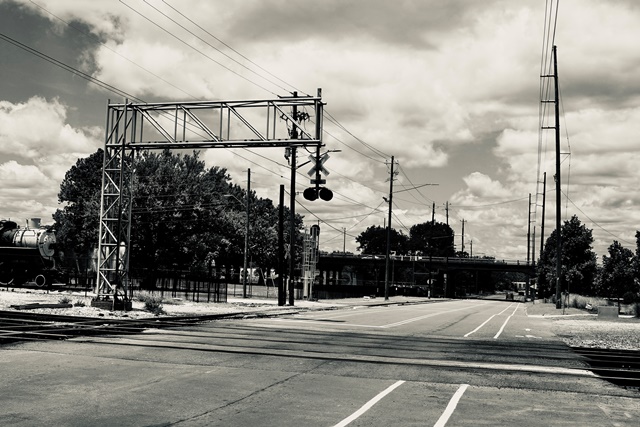 Zwartwit foto “Birmingham AL Diamond Railroad Crossing #1 2”